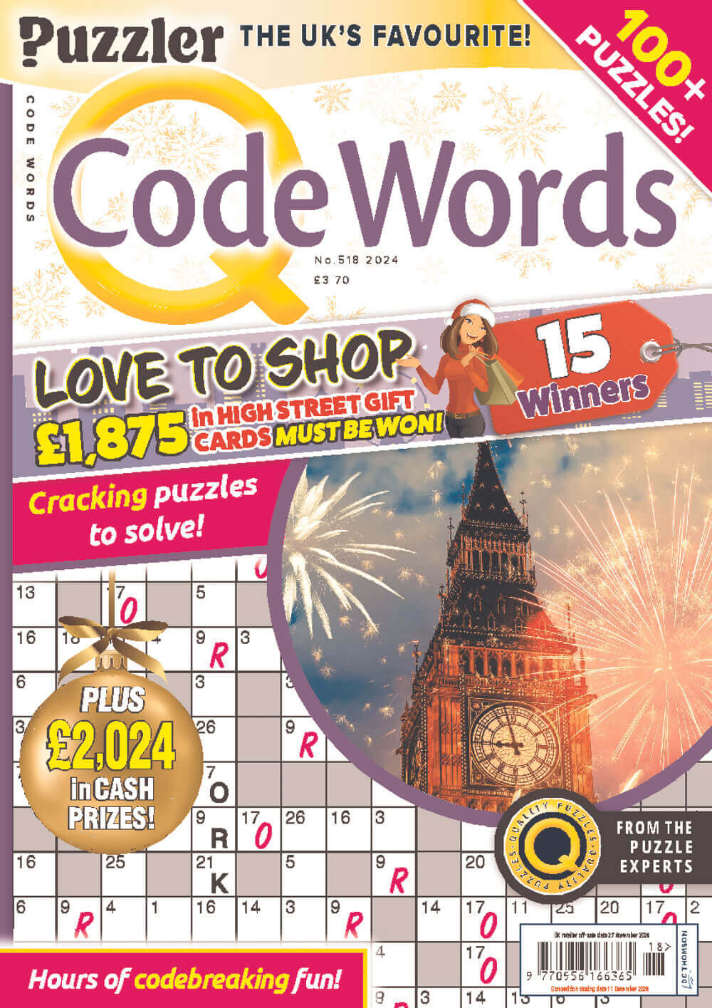 This long-established magazine boasts a great selection of quality codewords, in clear grids with easy-to-read numbers. Usually there are three starters but some puzzles have two, one, or allow you to choose how many.