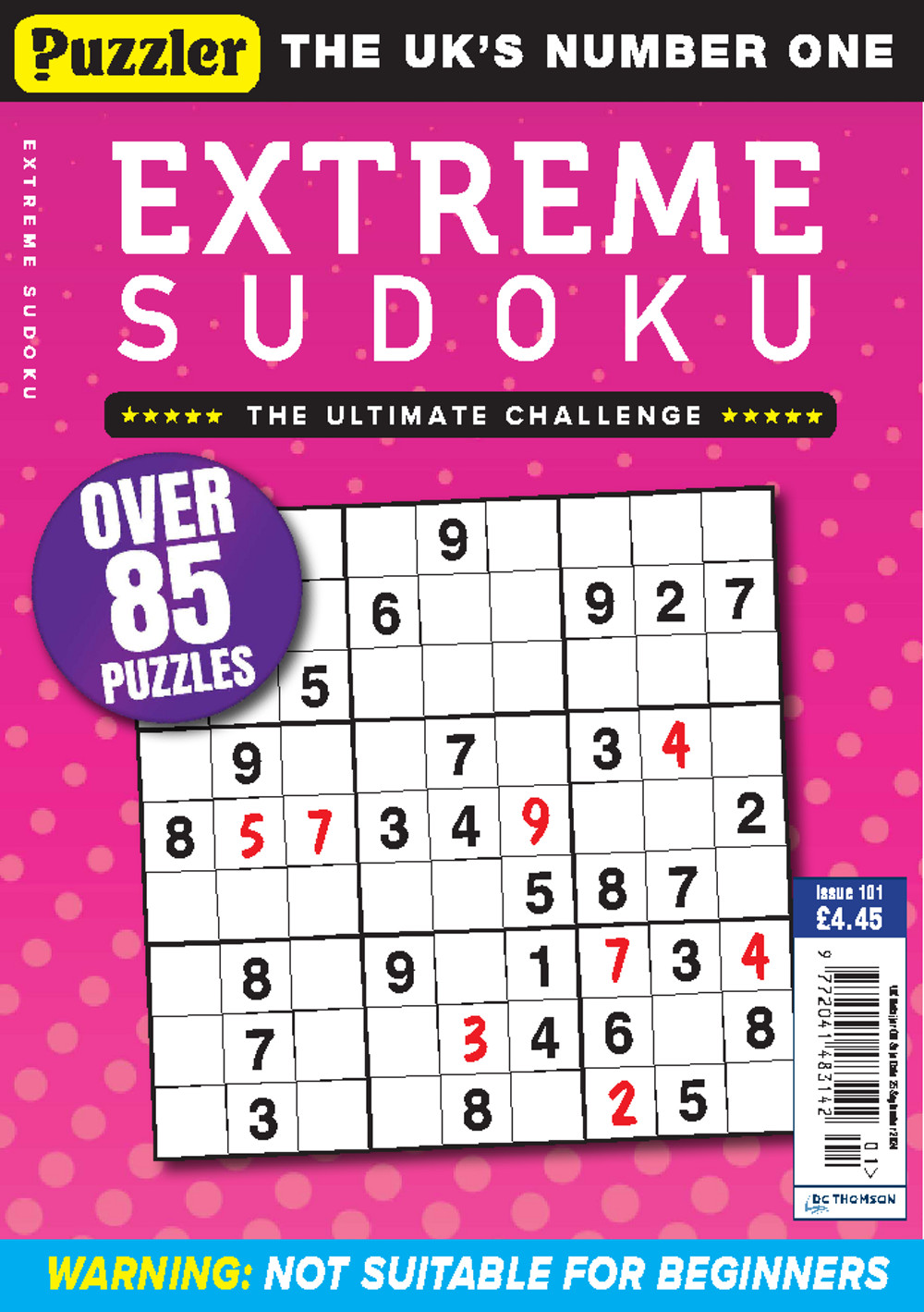 If you're looking for more challenging Sudoku puzzles, you've met your match in Extreme Sudoku! Tough but fair, these conundrums will challenge your solving ability to the limit.